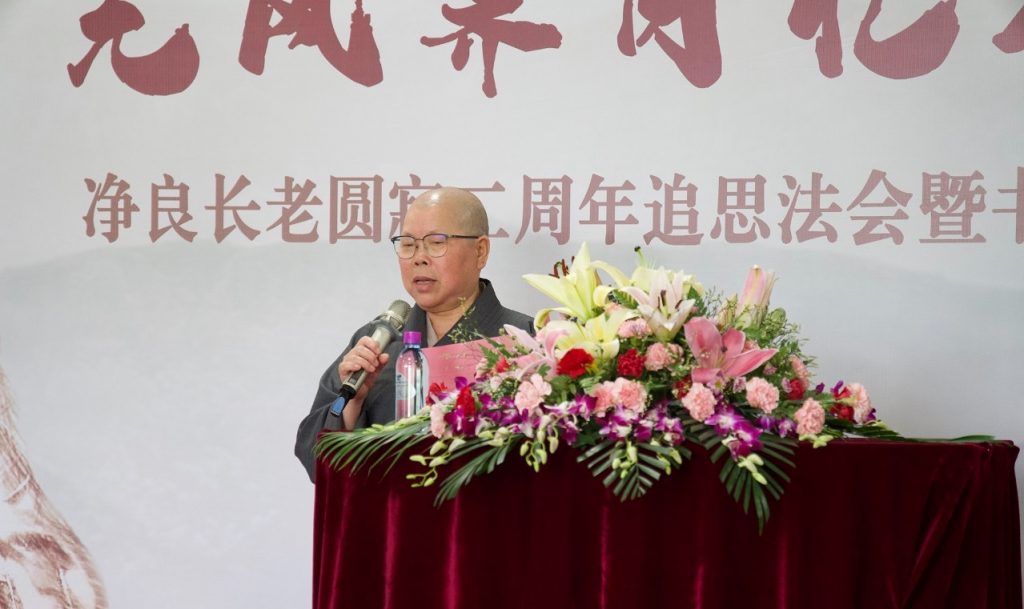 大和尚表示:“净良长老一生弘扬正法,常鼓励我们要念佛持戒,追求内心的清静。长老曾表示建设统一的祖国是我们当代人的历史责任和使命。他走访各地,演讲发文,积极倡导两岸和平统一。心系两岸佛教交流与发展,支持和参与海峡两岸及港澳佛事活动。长老倡导‘心心相映,台海相连’,他关心海峡两岸民众福祉,为台湾灾民捐款,为两岸的贫困家庭捐助粮食和生活用品,关注台湾青年的就业问题,彰显佛家的慈悲形象,关爱众生的家国情怀和使命担当,为当代年轻僧伽树立了典范。”