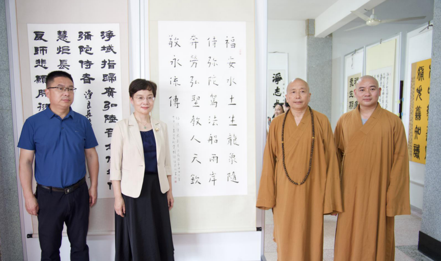 与会大众参观了净良长老本人及由诸位法师、书法家们书写的书法作品,法会现场殊胜庄严。
