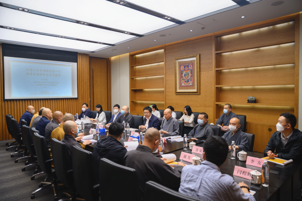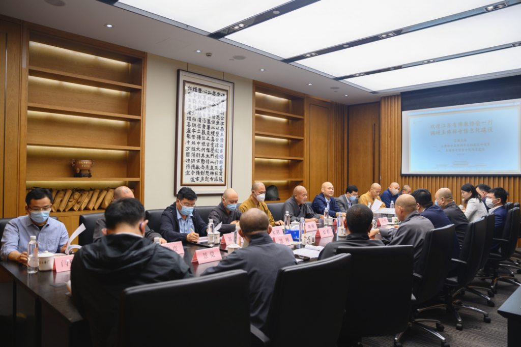 秋爽大和尚介绍了江苏省佛教协会和佛教寺院在信息化上的软硬件投入和建设进展,并分享交流了江苏省佛教协会在学僧培养、佛教文化弘扬、慈善公益方面的相关工作。