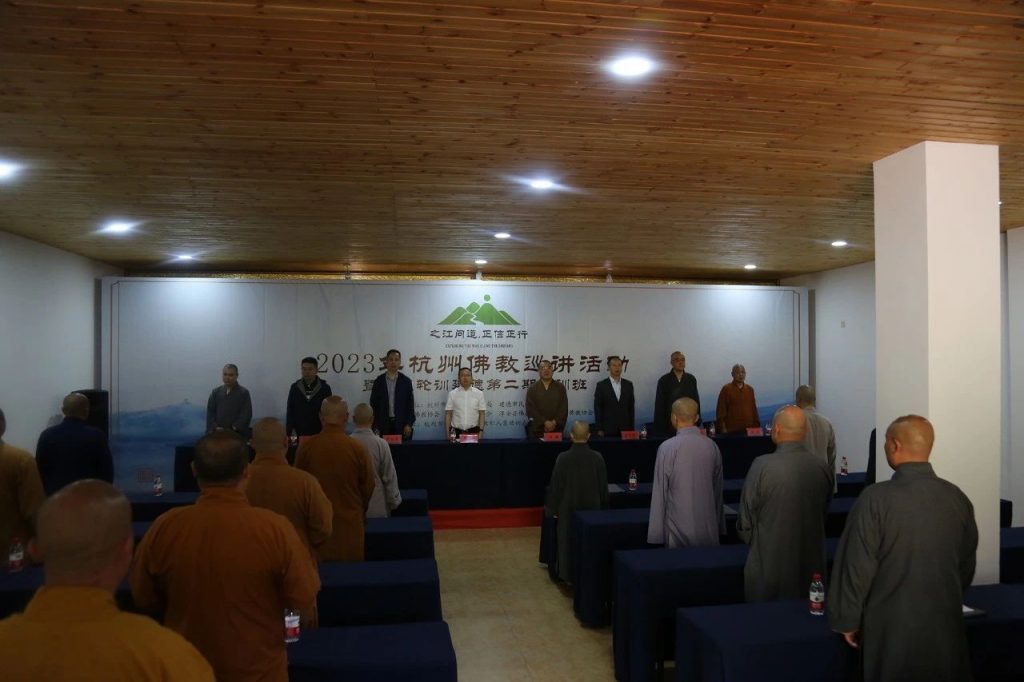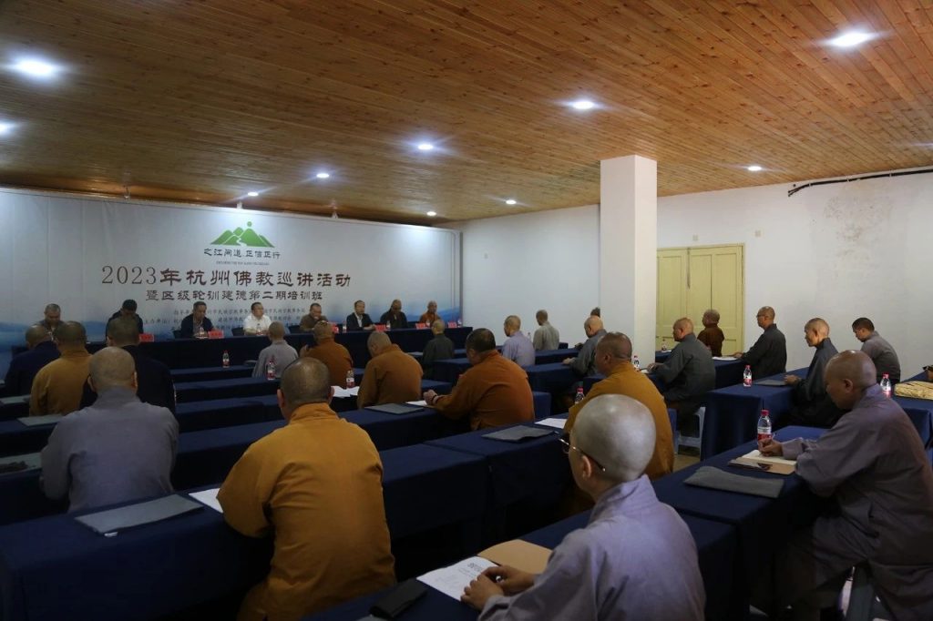 演通法师在致辞中表示,通过此次活动,提高自身的思想觉悟、文化内涵、佛学水平、管理能力等综合素养,更好地服务信众、服务社会,积极发挥引领示范作用,带领广大信众正信正行,走与社会主义社会相适应的道路,为杭州亚运会顺利举办贡献智慧和力量。