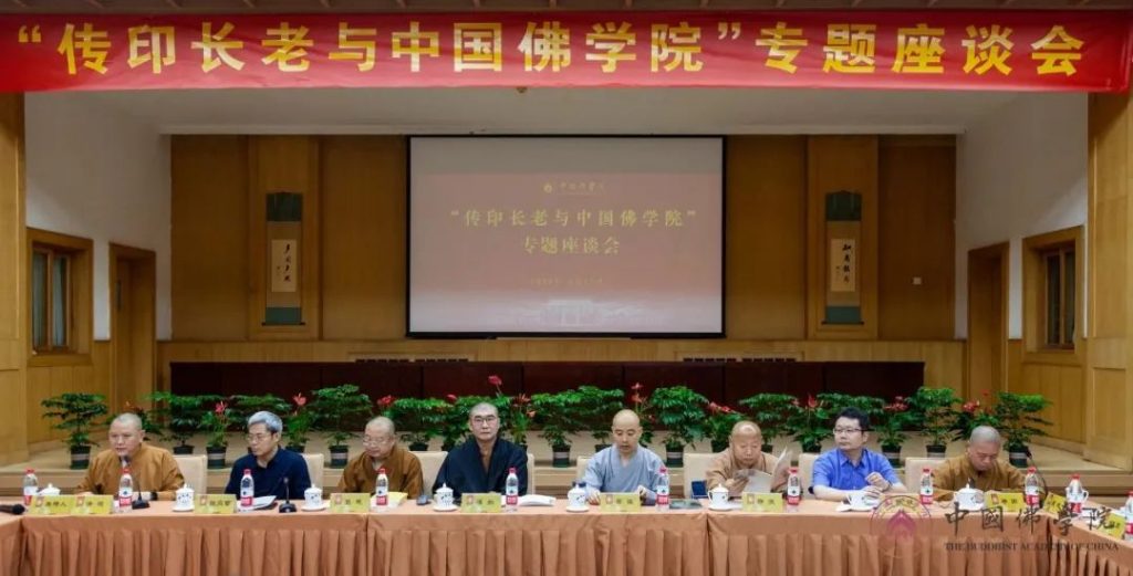 传印长老毕生作育僧才,陶铸龙象,承前启后,传灯续明。为中国佛教培养了大批优秀人才。长老在主持中国佛学院工作和担任院长期间,认真履职、勤勉工作,推动中国佛学院加强自身建设,为中国佛学院的发展建设作出了重要贡献。为了缅怀长老一生的悲智行愿和巍巍功德,追忆长老嘉言懿行,纪念长老德行智慧,研究长老佛学思想,2023年6月17日,在长老圆寂百日之际,我院在法源寺校区举办了“传印长老与中国佛学院”的专题座谈会。