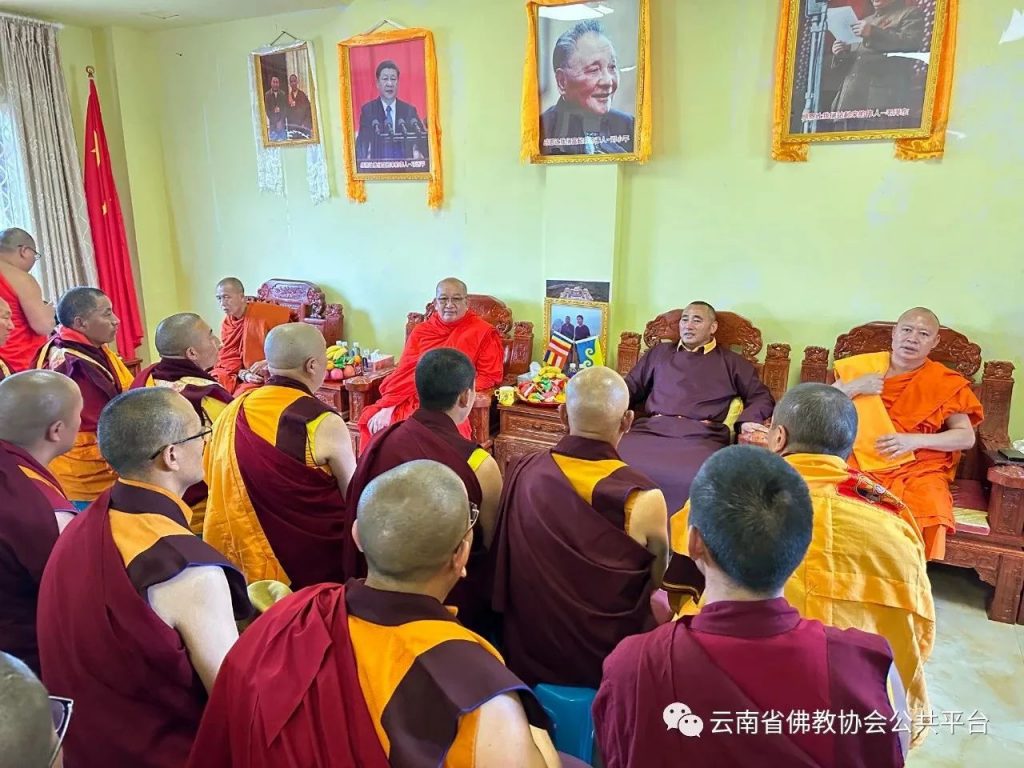 在德宏,参访了瑞丽市菩提学校和芒市菩提寺学习并座谈。代表团对当地在寺院管理、学校管理、僧才培养、佛教活动组织、民族团结等方面所作的工作进行深入细致交流,共同探讨南传佛教僧才培养方面存在的问题。