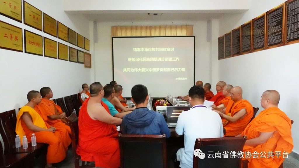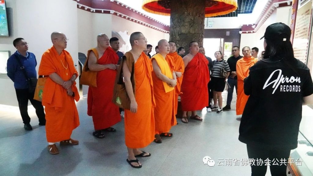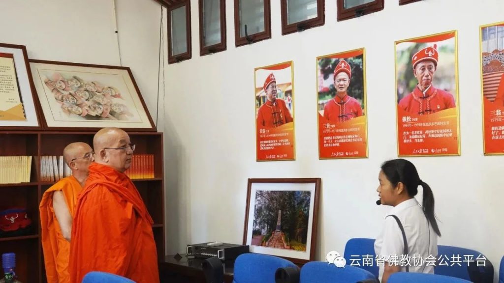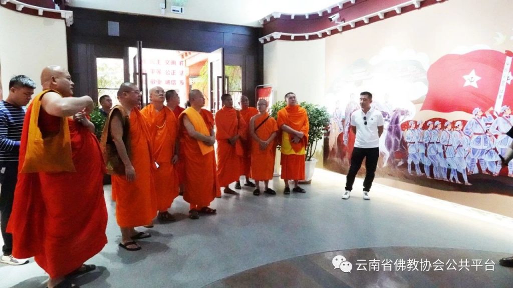 在丽江市指云寺宗教界爱国主义教育示范点,南传法师们认真学习了指云寺僧众曾积极为红军筹措物资,助力红军顺利过丽江的红色事迹,学习宗教中国化方向、各民族同舟共济谱写民族团结新篇章、铸牢中华民族共同体意识等方面的民族团结、宗教健康传承的丰富内容。