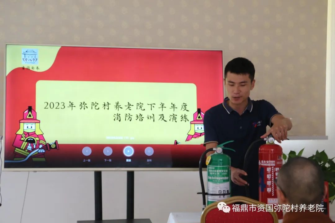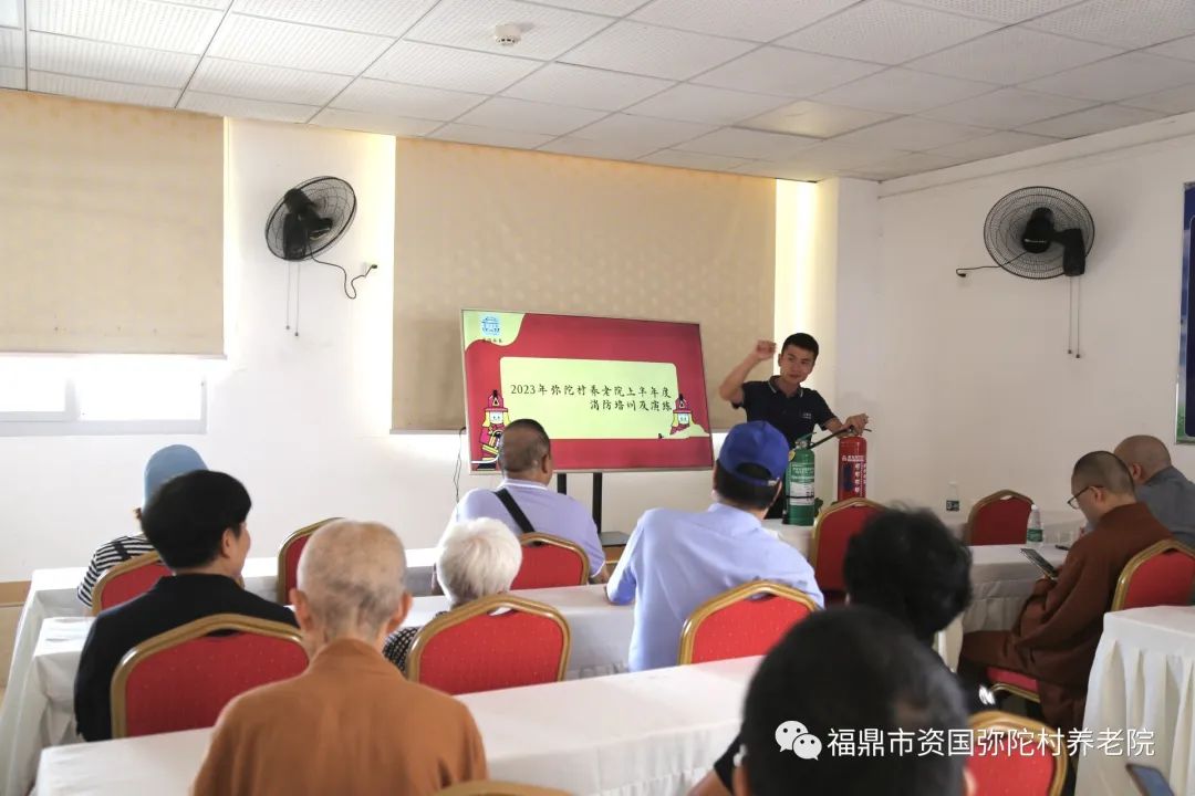 7月21日,弥陀村养老院邀请宁德合顺消防技术公司在弥陀村了尘楼开展消防安全培训及演练。切实加强弥陀村养老院消防安全管理,进一步提高养老院老人和工作人员消防安全防范意识与应急处置能力,提升老人们在发生火灾时自防、自救能力,遏制和防止消防安全事故发生,保障入住人员的生命财产安全。