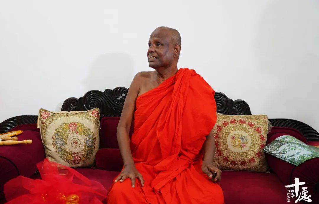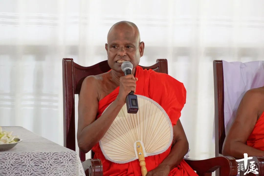 圣菩提树苗交接仪式上,赫摩拉特纳大长老详细介绍和讲解了圣菩提树在佛教中的重要地位。赫摩拉特纳大长老(Pallegama Hema rathana)是包括圣菩提树寺院在内的阿努拉特普勒古城八大处总管大长老,是该地区地位最尊贵的佛教领袖。