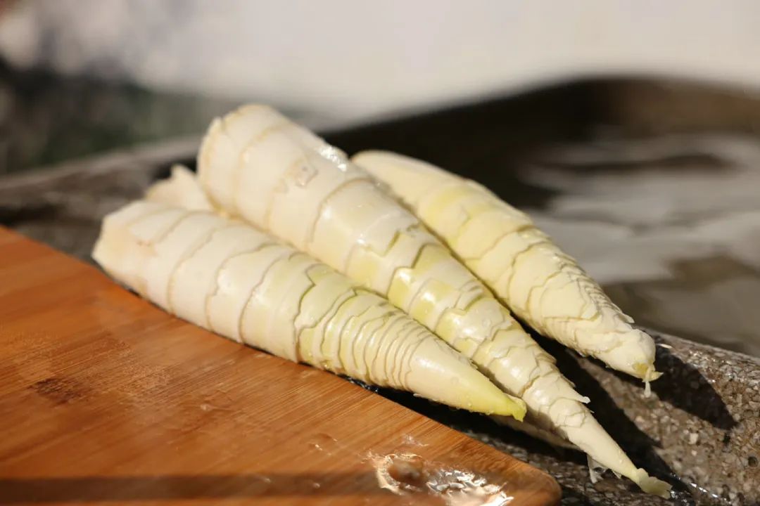 自离开土壤的那一刻,笋的鲜味便开始在流失,采挖好的笋,需要即刻剥壳、去根、洗净、煮熟,