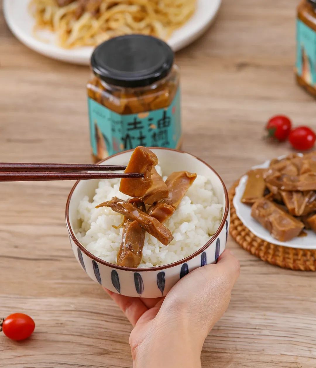 一罐油焖笋不用其它配菜,就着浓郁的酱汁和脆嫩的笋就能吃下几大碗饭。
