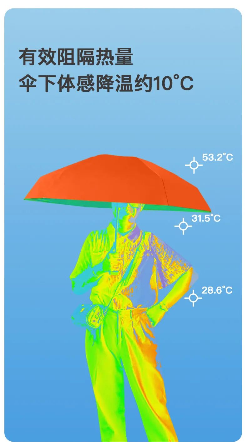 带着它出门,防晒又降温,犹如头顶上撑起一片移动的树荫,不管日照多强烈,有它比任何防晒产品都强!