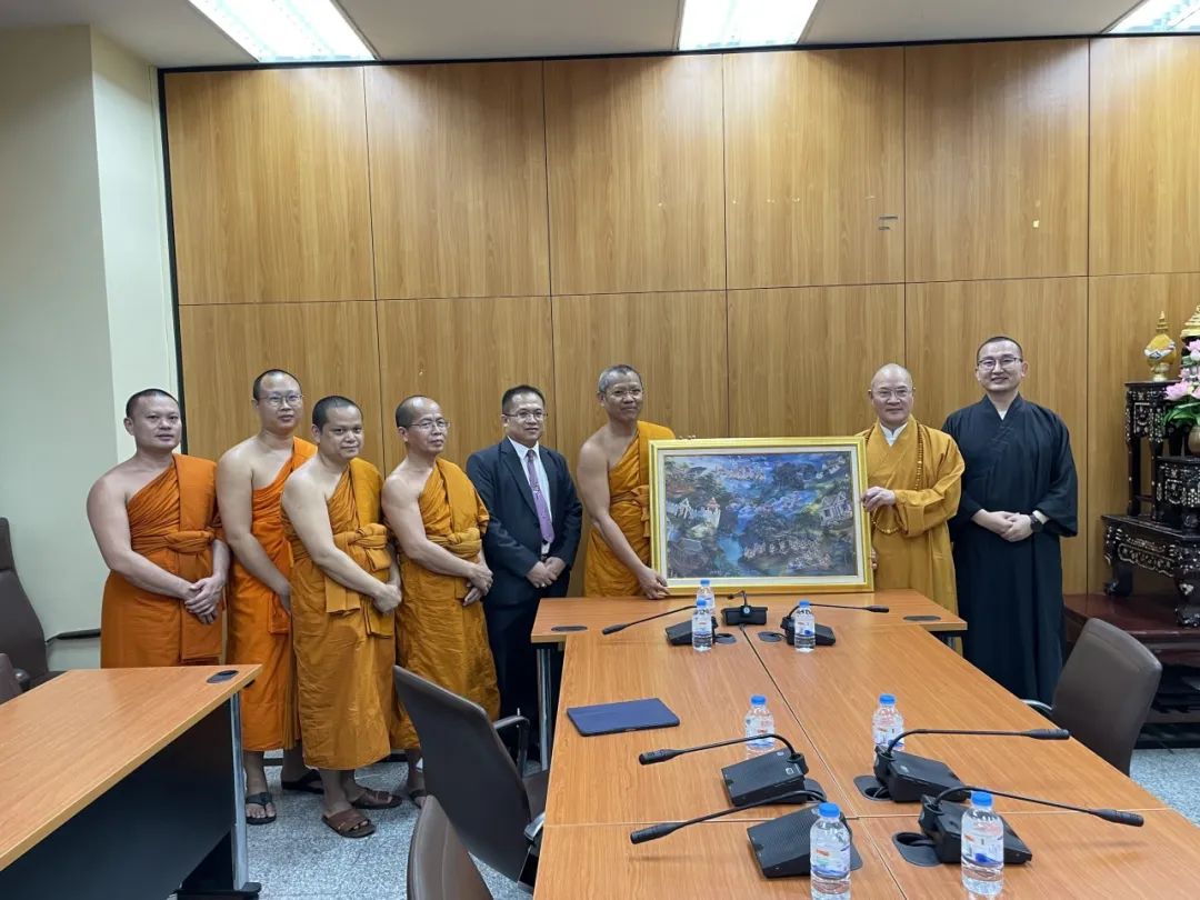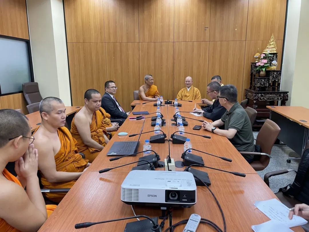 最后,本性法师一行与分管摩诃朱大的外交事务副校长等进行专项内容的座谈,双方商定于今年的12月初于泰国,由大乘佛教研究中心与国际学院共同主办“中泰佛教·法水长流”一一第四届南北传佛教交流学术论坛”。