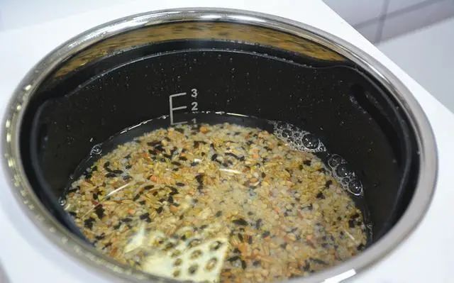 和其他需要提前浸泡一晚的全谷物不同,扁粮经过简单的漂洗,和大米一同放到锅里,同煮同熟一同出锅。