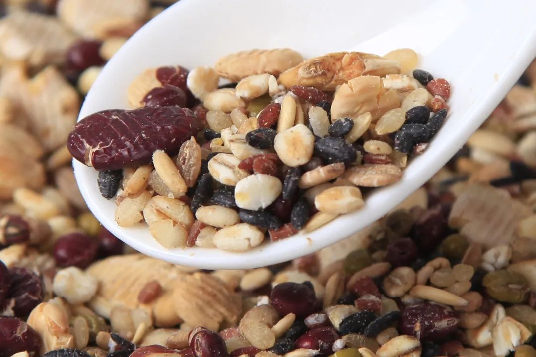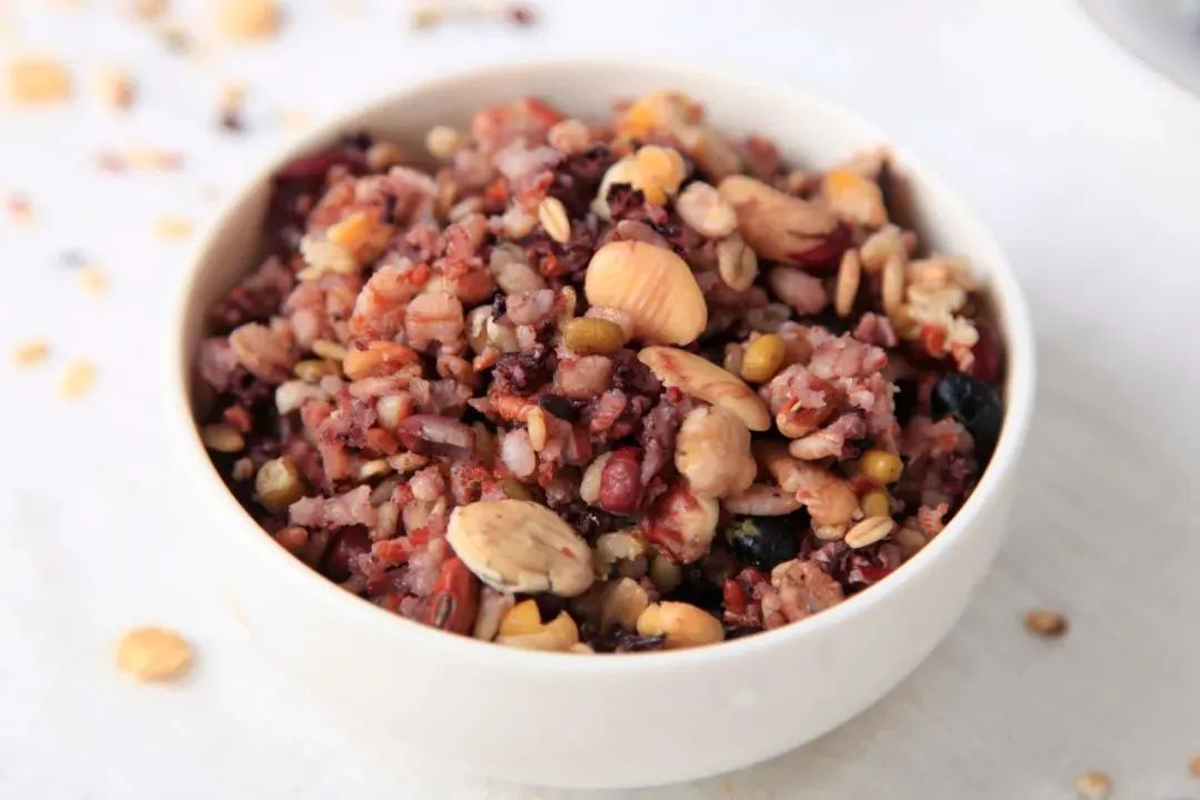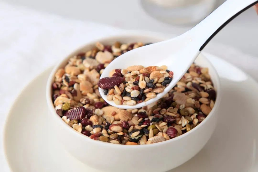 尤其,一日三餐必不可少的主食,米饭、面条,吃到肚子里大部分都是碳水,血糖升高快,营养也比较局限。最好的方法就是在主食中搭配全谷物!全谷物保留了完整谷粒所具备的谷皮、糊粉层、胚乳、谷胚,营养密度高。《中国居民膳食指南》也建议每天食用50-150g全谷物和杂豆。