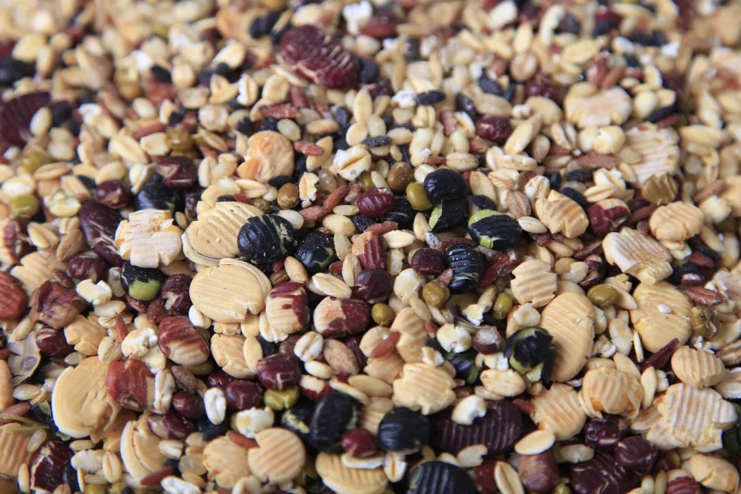 相比之下,这款全谷物扁粮将红米、黑米、糙米、燕麦、豌豆、黑豆……米麦豆三大类,一共15种全谷物混合在一起。就连鹰嘴豆、青稞、白扁豆这样营养密度高,平时少吃到的谷物也全配好了,根本不用自己再费心搭配。