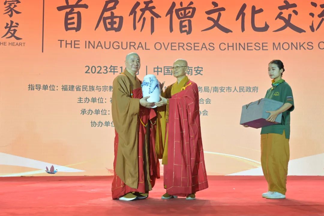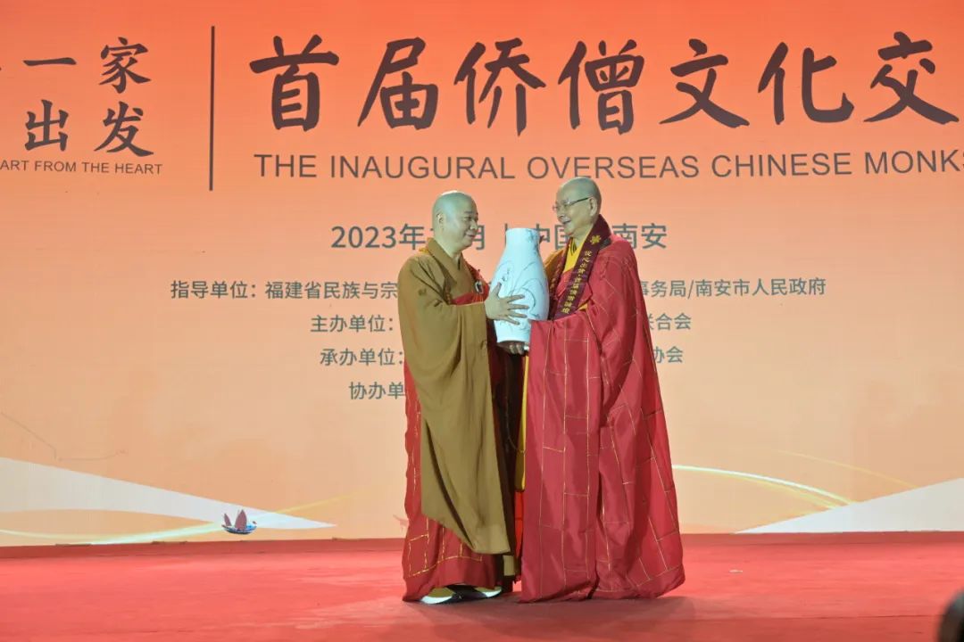 则悟法师代表福建省佛教协会与菲律宾佛教联合会互赠礼品
