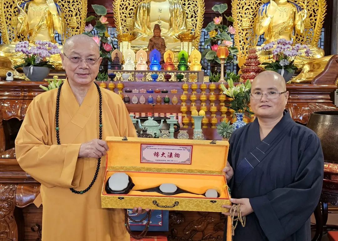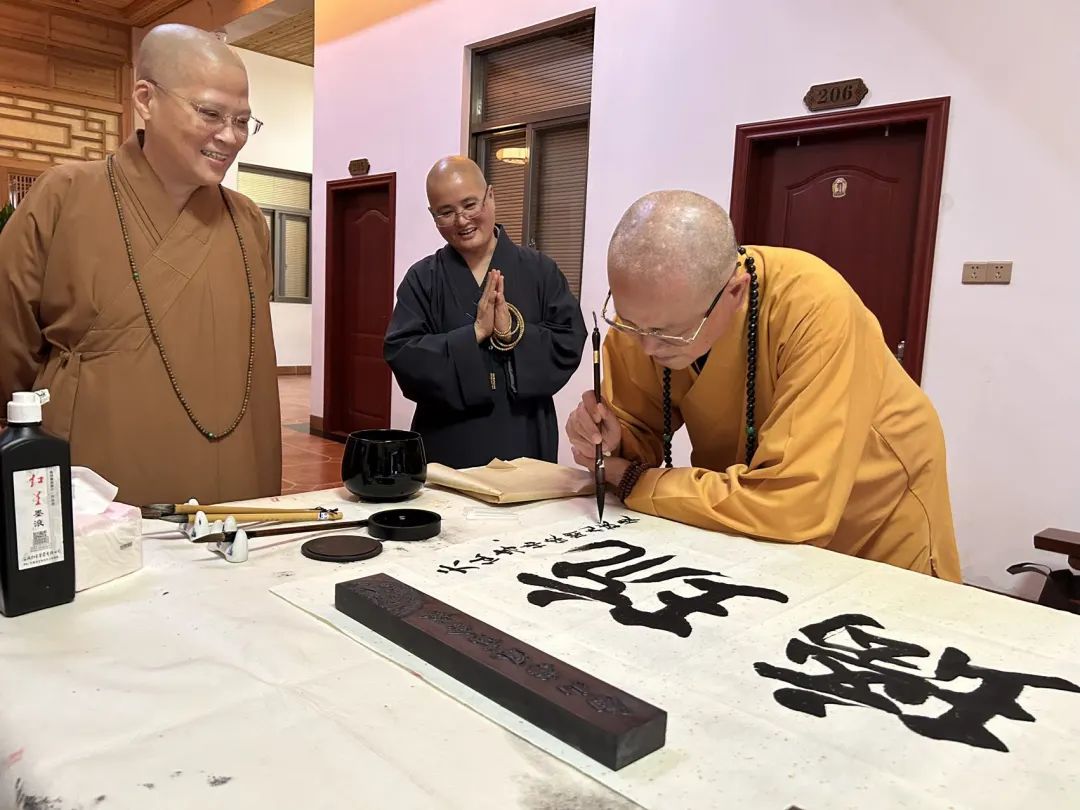 净耀法师表示,大陆和台湾虽相隔两岸,但同根同源,佛教界法脉相连,法谊坚固。