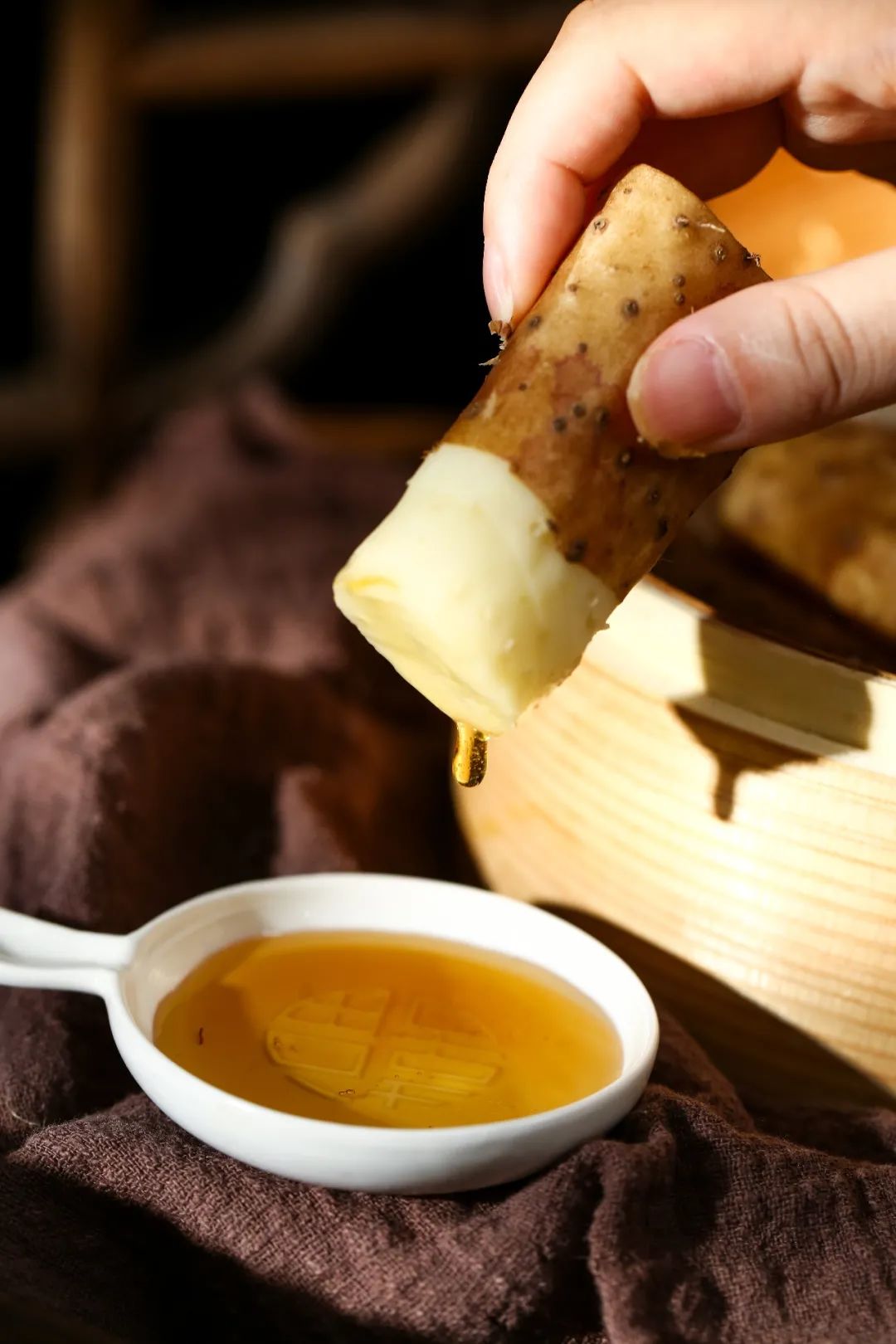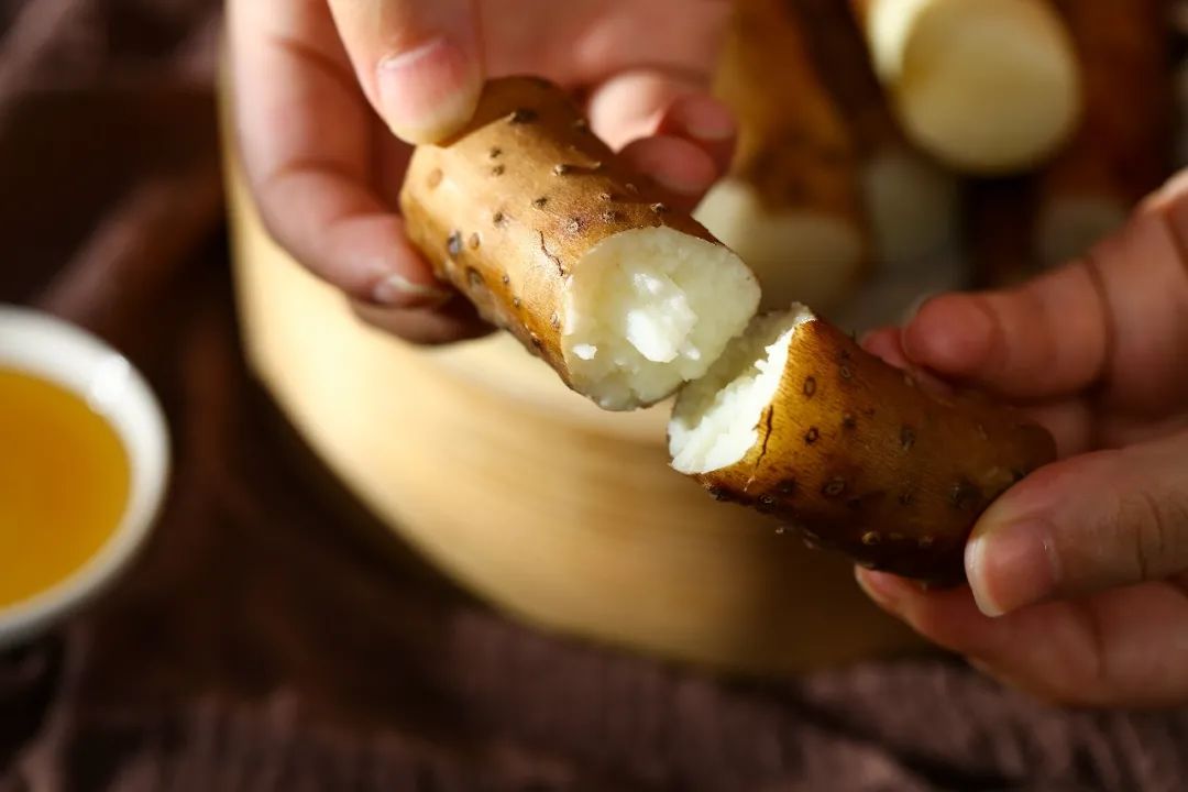 以口感细腻,软糯著称。和铁棍山药一样,表皮带着铁红色斑痕,削皮后的肉质却洁白如玉。