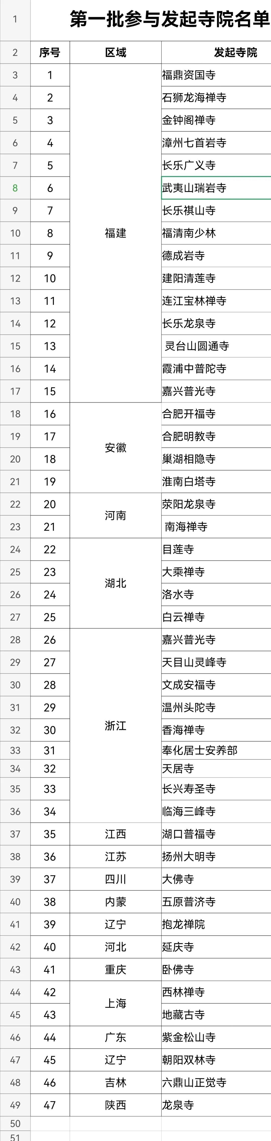 发起“为了忘却的记念——百年百寺祭奠英烈活动”的寺院名单