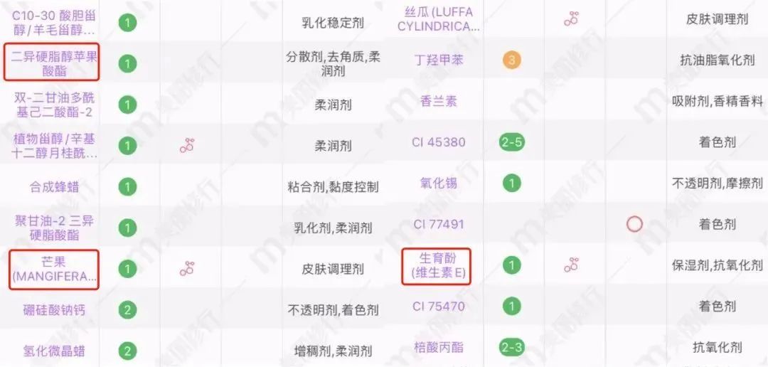 作为一支“美唇棒”,核心功能还是要润唇。我们来看看DIOR变色唇膏的成分表,二异硬脂以及芒果籽脂、维生素E……都是具有非常好保湿效果的成分。