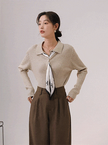 这款针织衫最大的优点在于:超有型!超显瘦!不同于刻板正统圆领或V领,专为女性设计的POLO翻领,带点法式腔调,随性之间透着十足女人味。脸、脖子再到肩膀,自然过渡,穿上后秒变修长“天鹅颈”,苗条纤细。