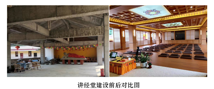 然初入古寺,见山门未立,大雄宝殿年久失修,渐成危楼。殿内墙壁斑驳不堪、佛台简陋破败、佛像老旧褪色、主殿构件朽腐松动,地藏菩萨无遮无盖、弥勒及韦陀菩萨供奉处凋敝杂乱。所到之处,偶见烧香拜佛,未闻诵经说法。鉴此,当度法师深感弘扬正法、广布正信,任重道远。