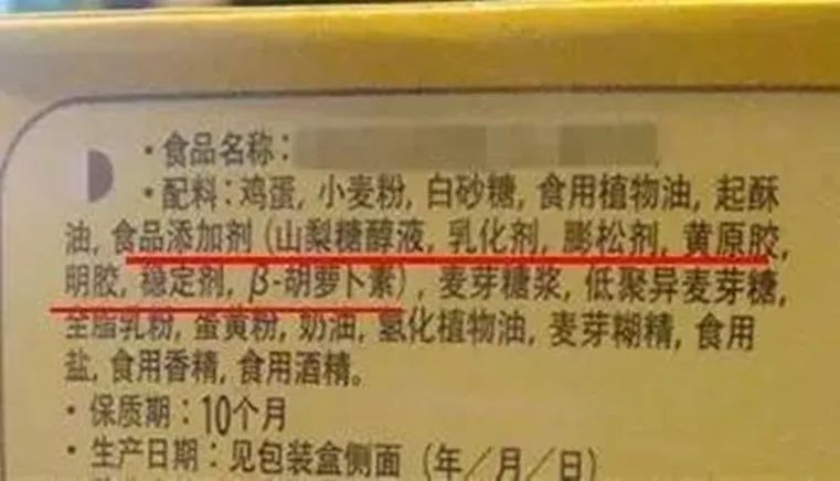 我们来看一下传统蛋糕的配料表: