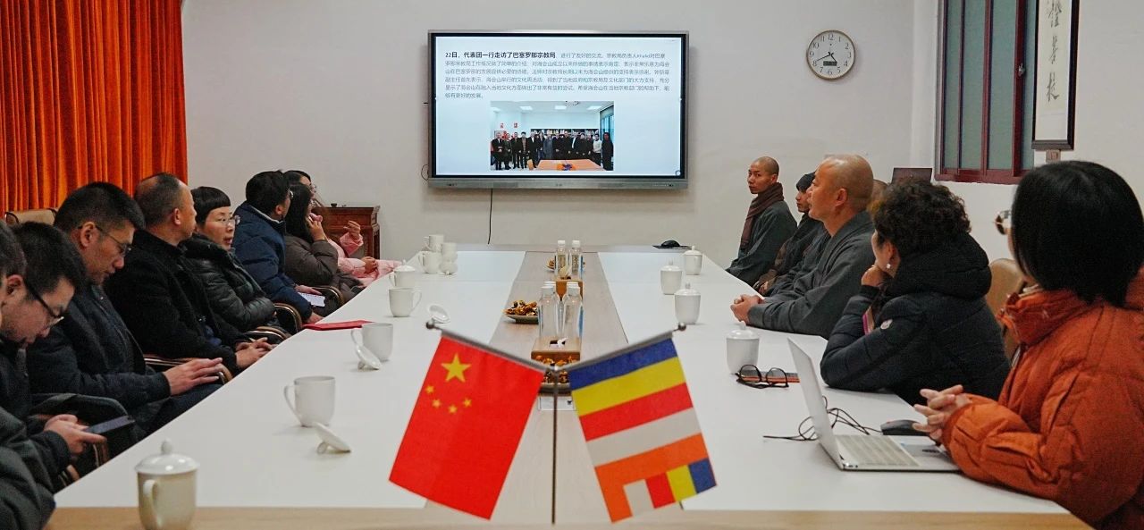 管君友副部长肯定了青田佛教协会在2023年积极推进佛教中国化、文化浸润、人才培养、场所建设、公益慈善、除险保安等方面的工作,对“山海相连•文明互鉴”2023海会山西班牙佛教文化周和首届海会山国际腊八文化节的成功举办表示祝贺,并为青田县佛教协会的法师们带来了新春的问候。
