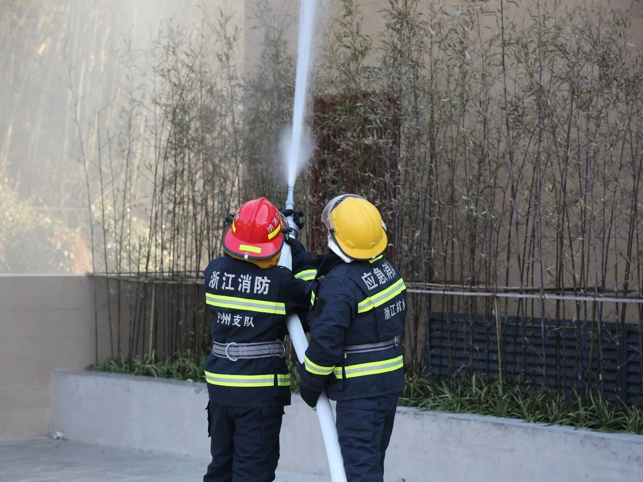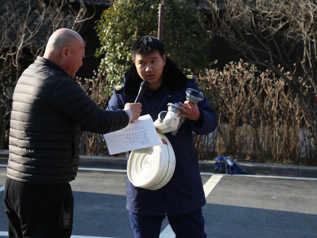演练现场,余杭区径山镇消防大队的专业人员为大家讲解了消防注意事项、火灾现场的应急处置重点,并亲自演示灭火器、防毒面具等工具的使用方法。