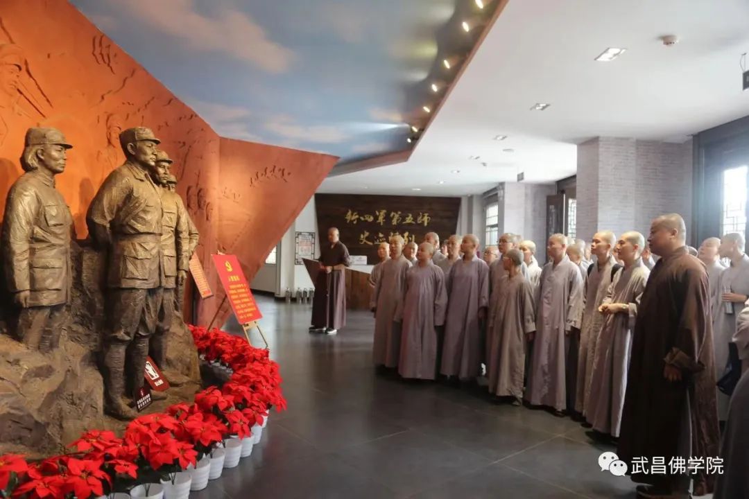 持续开展党史、新中国史、改革开放史、社会主义发展史、中华民族发展史教育和爱党爱国爱社会主义主题教育,召开“增强五个认同,弘扬爱国精神,促进宗教和顺”主题座谈会,举办“南京、武汉、成都、南昌佛教界庆祝中国共产党成立100周年书画联展”“喜迎二十大 翰墨丹青颂党恩”书画作品展等,参加武汉市宗教界“喜迎二十大·共筑中国梦”演讲比赛,组织武汉佛教界代表人士和武昌佛学院师生赴武汉革命博物馆、八七会址、武汉二七纪念馆、黄陂姚家山新四军第五师司政旧址群、西安事变纪念馆、汉中市古汉台等爱国主义教育基地开展“三爱”主题教育活动,加强“五史”学习,培养爱国主义情怀,厚植爱党爱国爱社会主义的思想政治基础。积极响应全国性宗教团体《关于学习宣传贯彻爱国主义教育法 传承弘扬爱国主义精神的共同倡议》,通过集中学习、个人自学和网络宣传等形式,深入学习宣传贯彻爱国主义教育法,传承弘扬爱国主义精神。指导全市各寺院和武昌佛学院学习《国旗法》等相关知识和礼仪,在国庆、春节等重大节日和宗教节庆、纪念活动举行升国旗仪式并奏唱国歌。指导武昌佛学院积极参加武昌区委、区政府举办的“学习贯彻二十大,武昌统战展新篇——武昌各界人士庆祝建城1800周年联谊活动”,表演诗朗诵节目《时刻颂》。