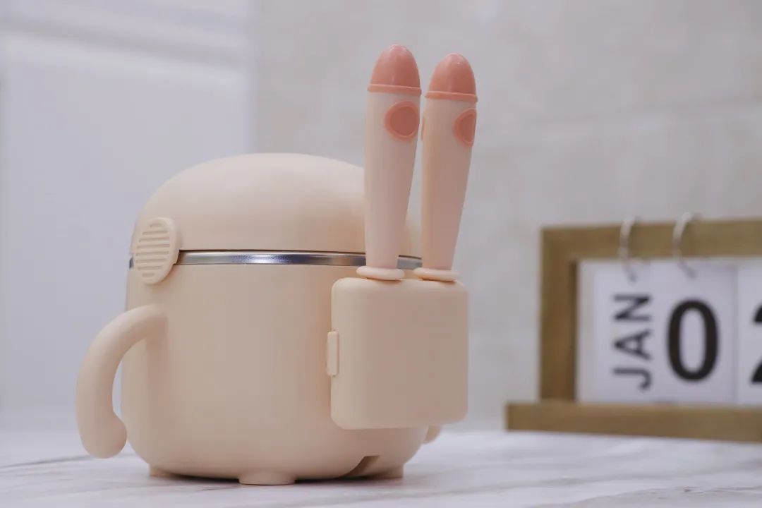 胖墩墩的米白色样式,圆润简洁的手柄,萌得人心里都要化了,还没到吃饭点就吵着要吃饭。