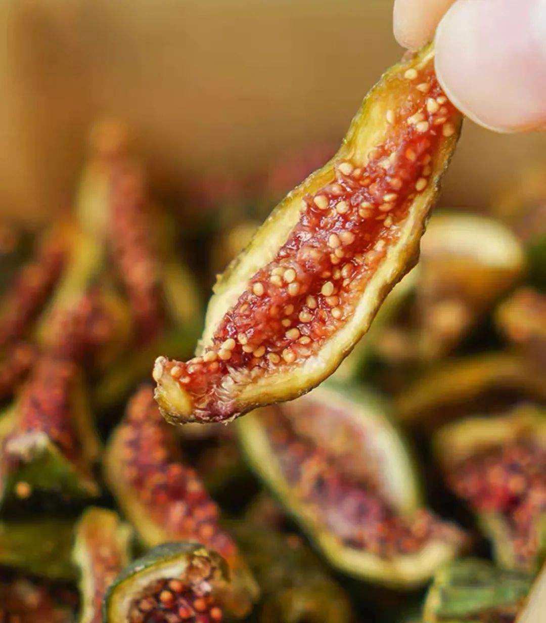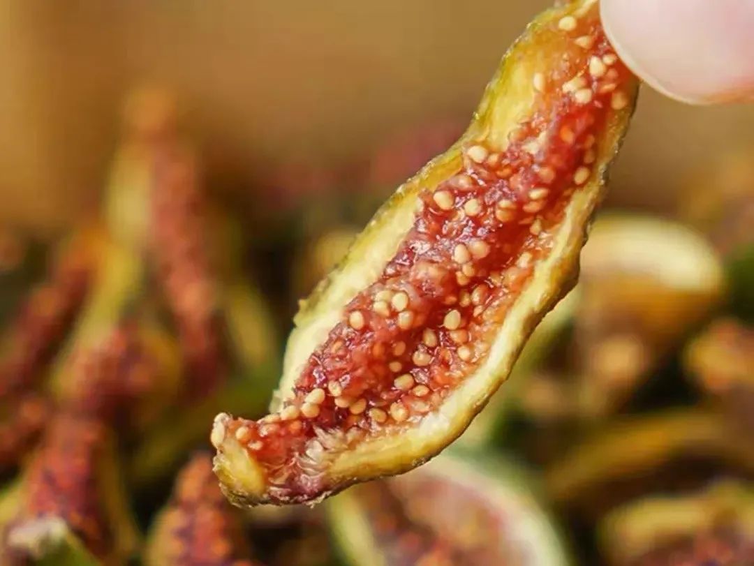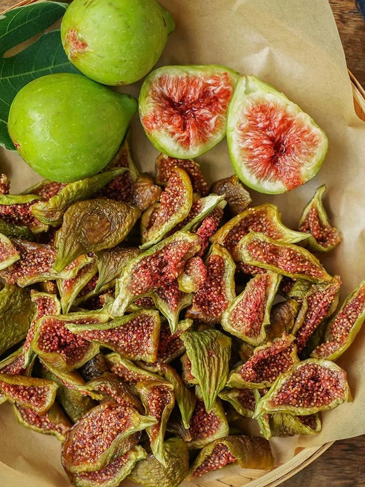 吃过新鲜无花果,极少人吃过无花果干,这也是公认干的比新鲜果还更好吃的水果,制成果干很好的锁住了无花果的营养成份,里面含有丰富的花青素和多酶,药食俱佳。