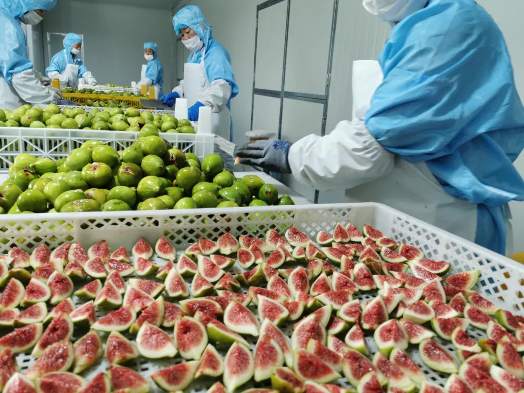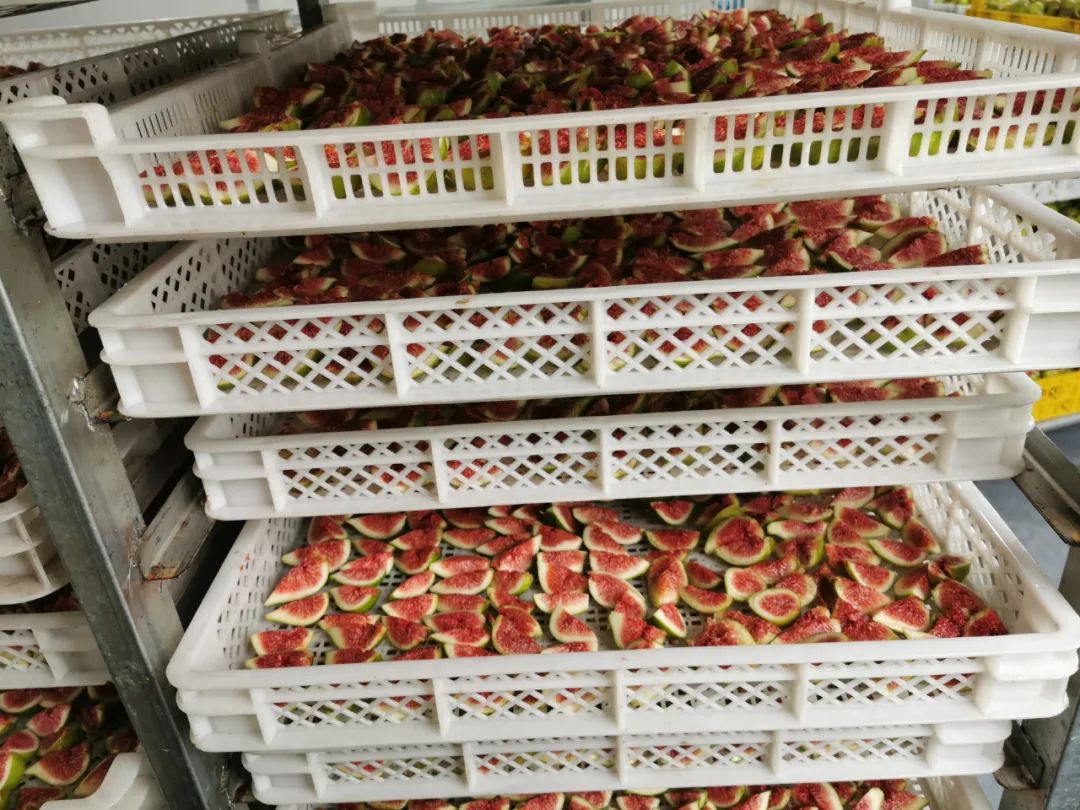 一年一熟,无花果每年7月至11月熟一季,新鲜的无花果就直送果干厂处理,制作成耐存放、保住营养的无花果干。