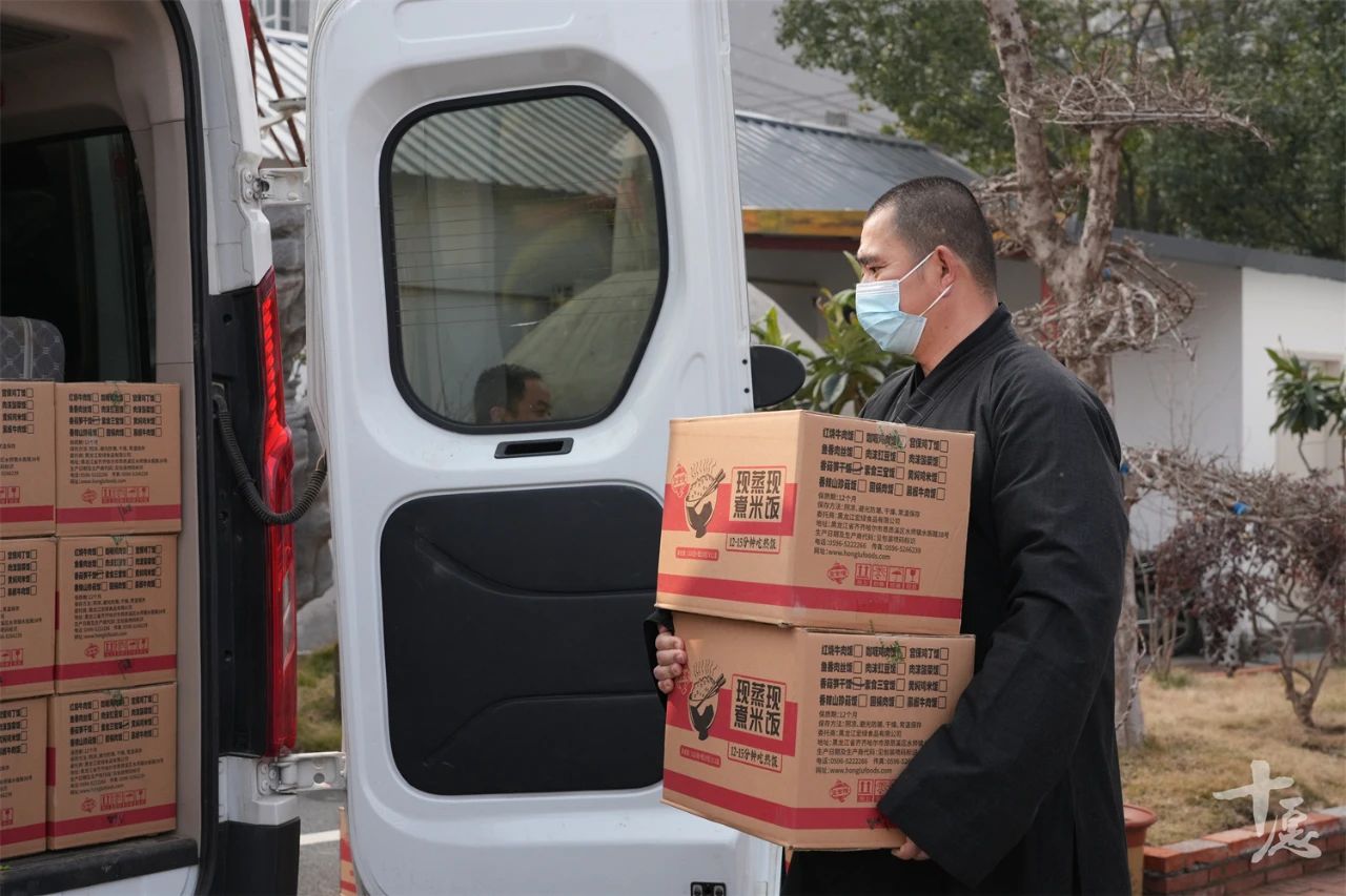在湖北省佛教协会副会长、黄冈市佛教协会副会长兼秘书长崇谛法师的安排下,慧海公益发起人、凤凰网佛教文化总编辑崔明晨,慧海公益执行秘书长、十愿网董事长张科,黄冈市佛教协会周晨冉、王婷婷,黄州安国禅寺知客崇舆法师等走访了黄冈部分偏远寺院,此次公益行动不仅有自热斋饭,还有黄州安国禅寺僧众供养的米面油等生活物质。