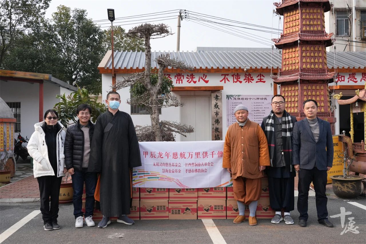 3月2日,甲辰新春湖北供僧慈善公益活动第一站落地孝感,孝感市佛教协会会长觉明法师、秘书长陈翼飞,慧海公益发起人、凤凰网佛教文化总编辑崔明晨,慧海公益执行秘书长、十愿网董事长张科深入一线,向孝南区、汉川市、应城市、云梦县、安陆市、大悟县及孝昌县等百余处佛教道场慰问并发放物资。此次活动得到了孝感市民宗部门领导和市县两级佛协的大力支持。