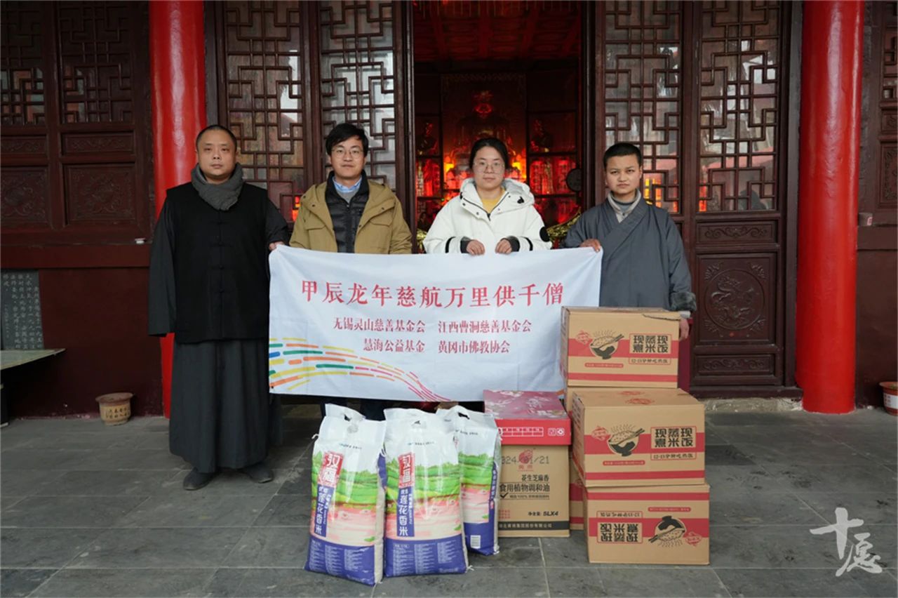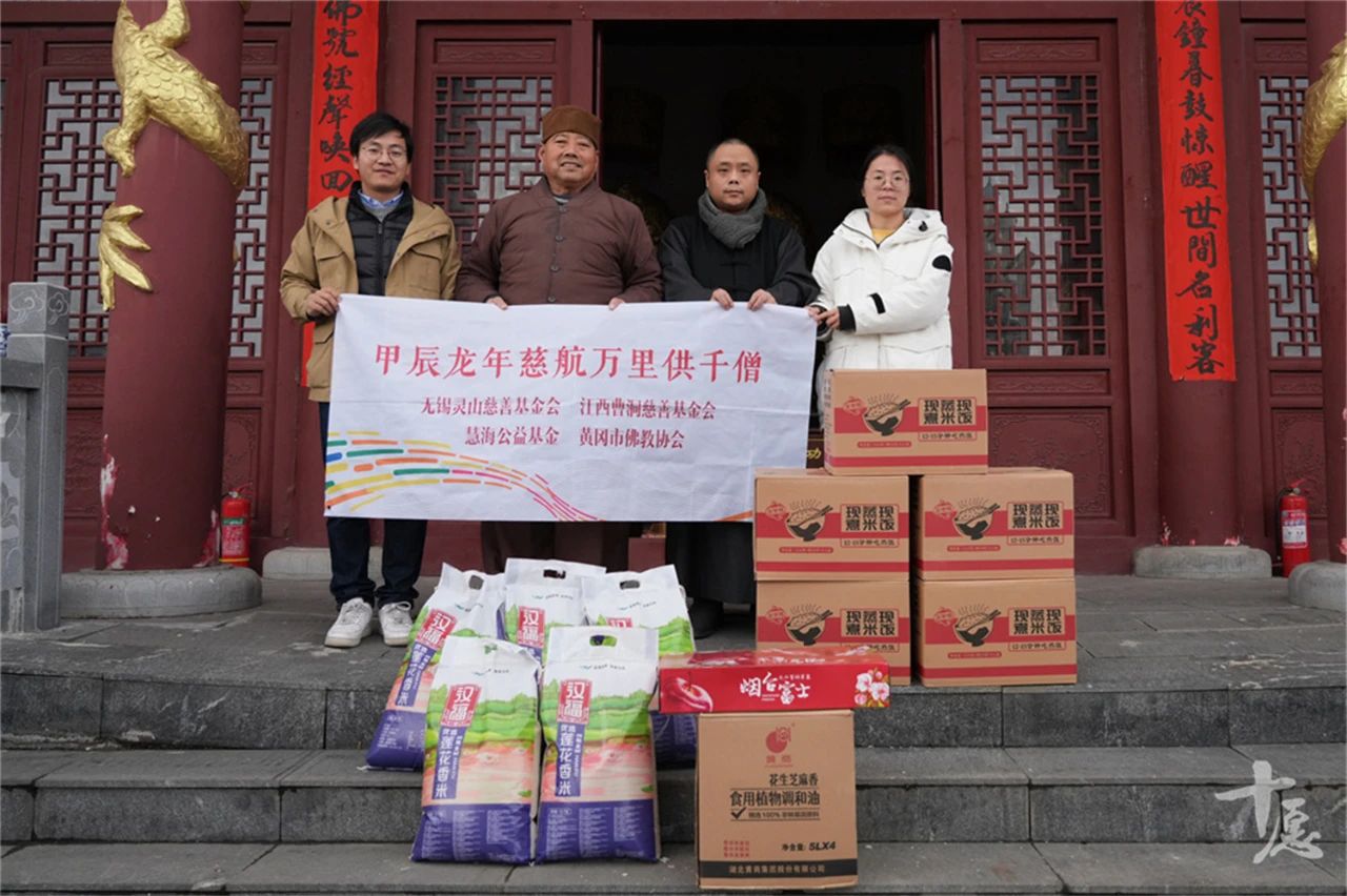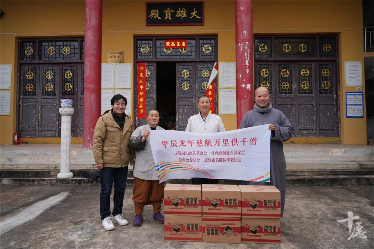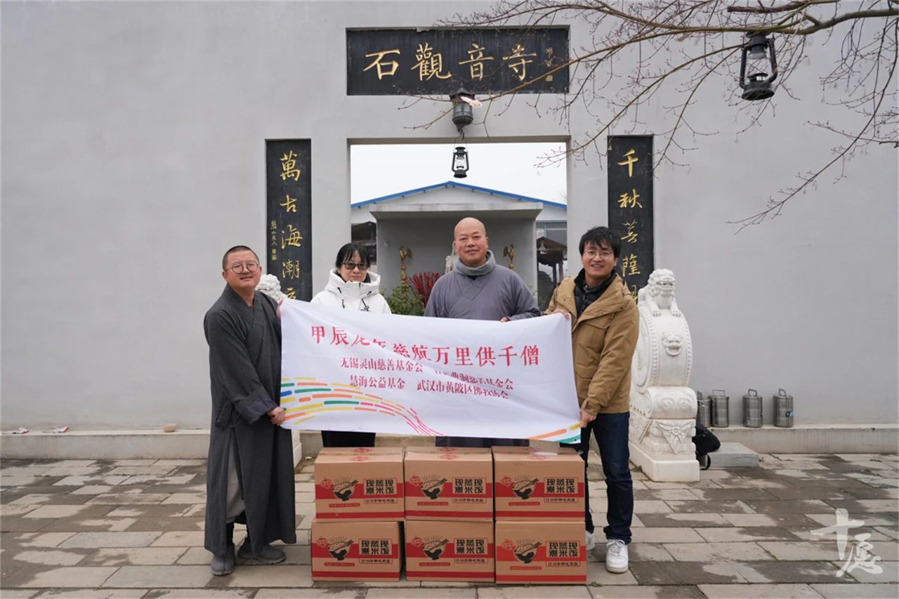 3月5日,甲辰新春湖北供僧之舟继续航向武汉市黄陂区,湖北省佛教协会副秘书长、武汉市佛教协会副会长、黄陂区佛教协会副会长明贤法师,慧海公益发起人、凤凰网佛教文化总编辑崔明晨,慧海公益执行秘书长、十愿网董事长张科,及武汉市佛教协会相关工作人员,走访了黄陂部分寺院,将素食斋饭送到石观音寺、能仁禅寺、感应寺等困难寺院。