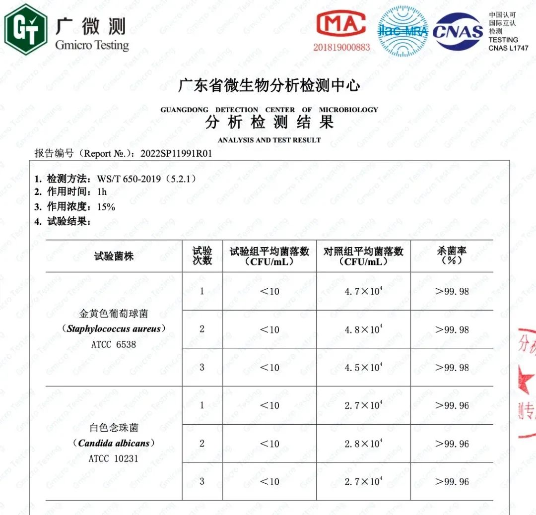 它还通过了CNAS实验室抗jun测试!A 级 除 螨测试!对实验细菌类 杀 灭 率 > 99.9%,对实验真 菌的杀 灭 率同样是 >99.9%!除 螨 率在实验条件下竟然达到了惊人的99.9%!