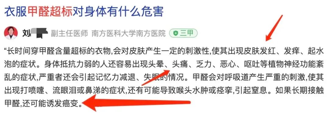 而且这还是一件小朋友的衣服,太可怕了!这些织物上的游离甲醛和危害化学物质,不仅在身上会被你吸入,而且在你出汗时,还会通过你的打开的毛孔,吸收到你的身体里,真的比吸入的危害大的多得多!