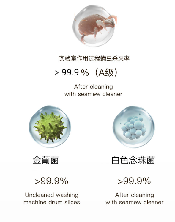 不仅污渍会瞬 间瓦解,就连异味也会被中和掉。而肉眼看不到的才更牛,官方称表面干净只是其一,影响皮肤不舒适、过 敏都是衣物上的细菌、螨虫和有害微生物导致的,用它泡一泡同时会将其分解得荡然无存。重点是,这个过程都不用动手搓!!!