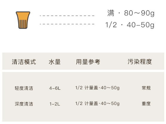 倒入适量泡洗粉在盖中,放入洗衣盆中加入50°C左右的温水及待洗衣物。