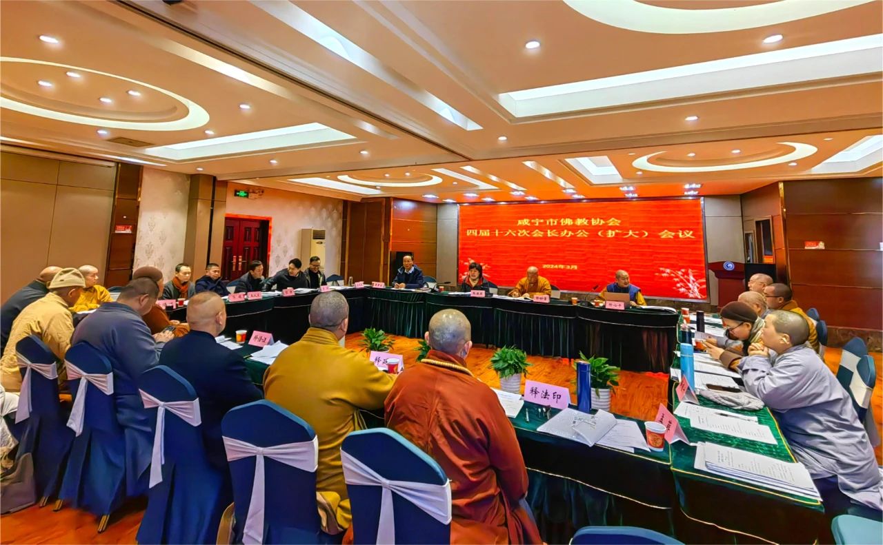 2024年3月8日,咸宁市佛协召开四届十六次会长办公(扩大)会议。咸宁市委统战部副部长、市民宗委主任张德英出席会议并讲话。咸宁市佛教协会副秘书长以上成员参会,赤壁市佛协会长悟道法师列席会议。