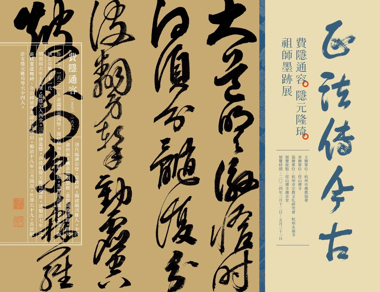 2024年3月12日,由杭州市佛教协会主办,杭州市宗教研究会、杭州永福寺协办,径山万寿禅寺承办的“正法传今古”费隐通容、隐元隆琦祖师墨迹展在径山万寿禅寺潮音堂隆重开幕。原杭州市人大常委会副主任、余杭区委书记朱金坤,杭州市民宗局一级巡视员、杭州市宗教研究会会长邵根松,余杭区委常委、宣传部部长倪伟俊,浙江省佛教协会副会长、杭州市佛教协会会长月真法师,中国美术学院书法学院院长助理贺维豪出席开幕式并致辞,来自省、市、区有关部门负责人、居士代表等一百余人参加开幕式。开幕式由杭州市佛教协会常务副会长戒兴法师主持。