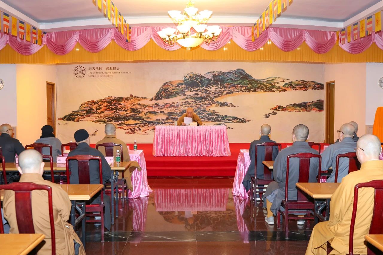 普陀山佛教协会副会长信光法师(常务)、惟航法师、智宗法师(兼秘书长)、门肃法师、会闲法师、定明法师、心遐法师及全山各寺院(单位)执事等230余人参加了此次学习会。