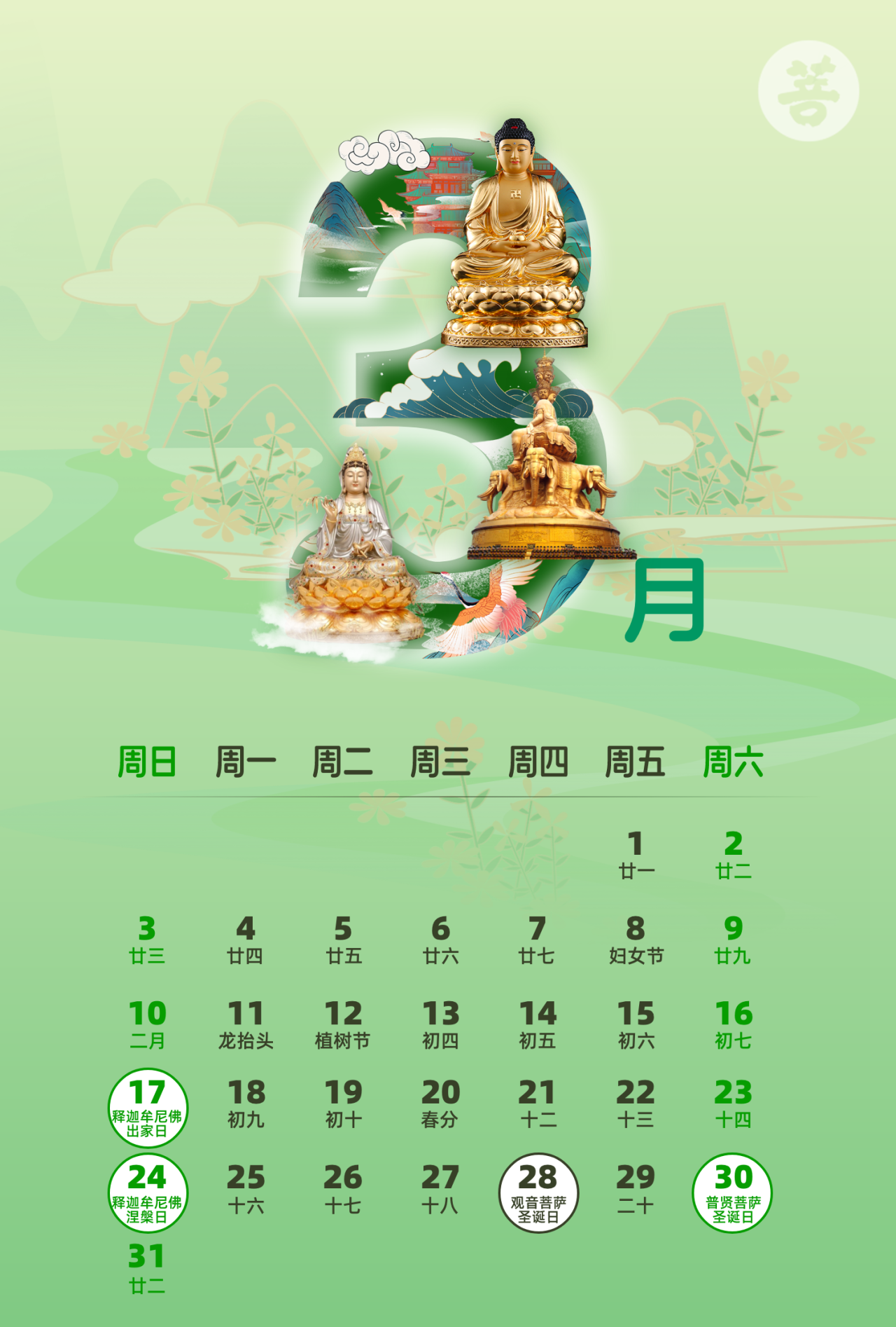收藏这份龙年日历!佛菩萨的圣诞吉日全都标注 三三两两 • 2024年3月22日 下午3:03 • 资讯 来源:行菩萨道 大菩文化 时间:2024-03-22 2024年龙年佛教日历 本网站属于非赢利性网站,转载的文章遵循原作者的版权声明,如有版权异议,请联系值班编辑予以删除。 联系方式:0591-83056739-818 18950442781 赞 (0) 三三两两 0 0 生成海报 宽运:念佛不忘救国 坚定支持基本法23条立法 上一篇 2024年3月22日 下午2:57 梦参老和尚:本来这个业障后面才出现,因为你拜忏,提前了 下一篇 2024年3月22日 下午3:09 相关推荐 资讯 莽原孤翼:一位和尚的非洲建寺始航 000 编辑:庄雅婷 2025年6月14日 资讯 天童禅寺常住出坡,以清新的环境迎接“十一”国庆佳节 000 编辑:泷中 2021年9月27日 资讯 上海真如寺上妙下灵长老圆寂讣告 000 编辑 志斌 2023年1月4日 资讯 习仲勋在宏觉寺与十世班禅会见追记 000 三三两两 2024年7月2日 佛教人物 莆田南山广化寺本性法师中秋节寄语 100 编辑:泷中 2021年9月20日 资讯 古寺建设 | 金钟阁禅寺【山门道路拓宽、拓长工程】今日启动 000 编辑:泷中 2021年9月26日 资讯 法乳一脉 闽台交流:台湾慈光寺祖庭朝圣团走访福建佛学院及莆田广化寺 000 编辑:庄雅婷 2023年10月20日 资讯 喜茶涉嫌违反宗教事务管理条例被约谈 000 三三两两 2023年12月5日 资讯 一位出家人的禅旅自述:雪落天台山,这一刻我像是候鸟找到了回家路 000 三三两两 2024年2月1日 资讯 天童禅寺举办“从紫禁城看构建之美”文化讲座 000 编辑:泷中 2021年8月25日 发表回复 您的邮箱地址不会被公开。 必填项已用 * 标注*昵称: *邮箱: 网址: 记住昵称、邮箱和网址,下次评论免输入 提交