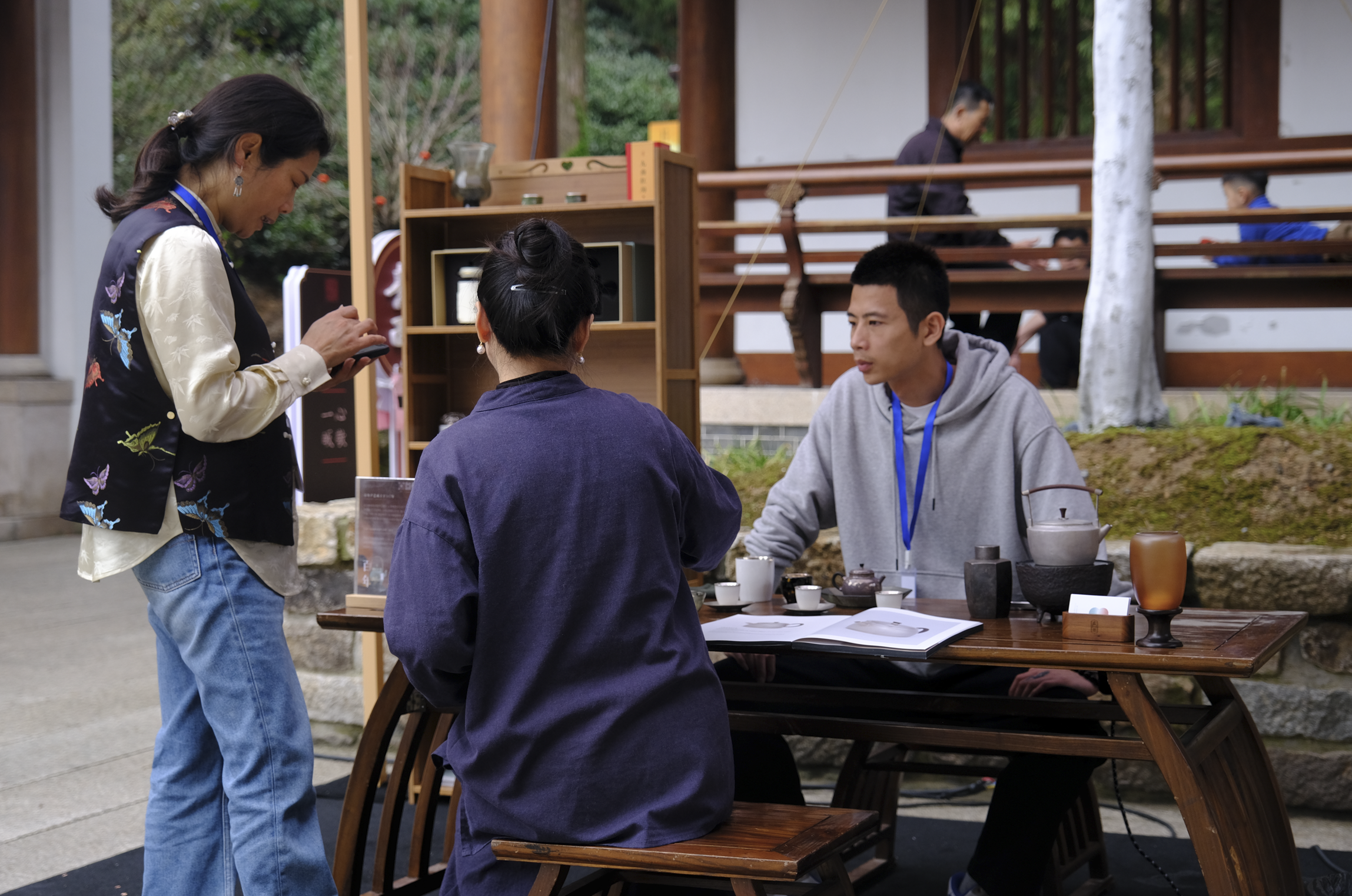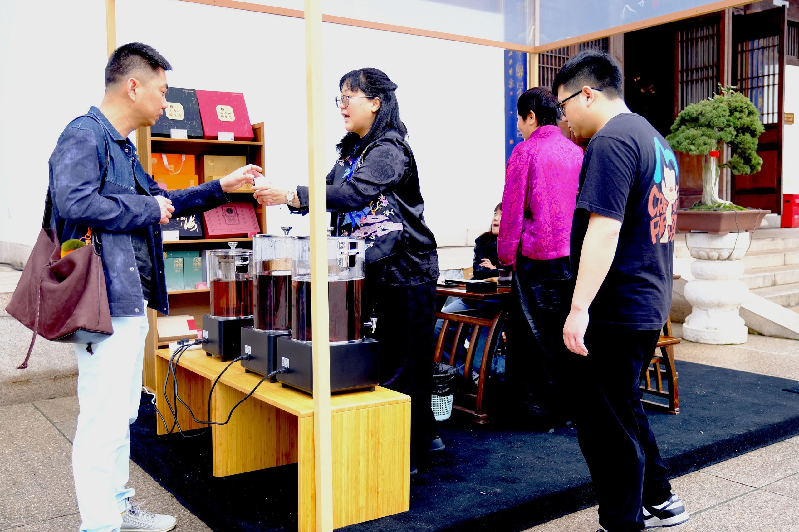 24日上午9时,径山春季普茶会正式开启。来自浙江、上海、江苏、福建各地的十家茶企茶人代表在径山寺云集,于寺院五凤山门内至潮音堂中心区域设置品茶区,共同向广大市民信众免费普同施茶。