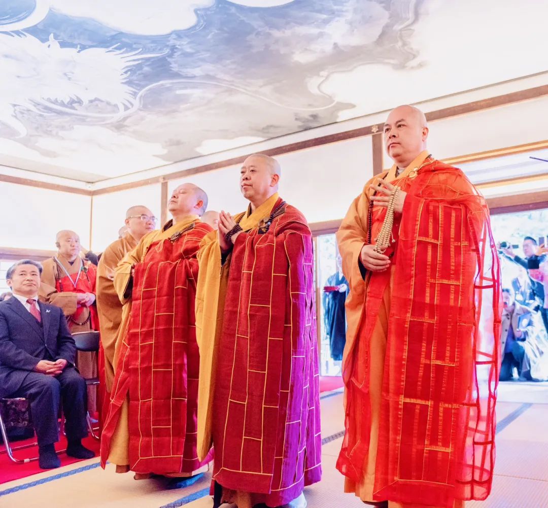 阳春三月,正是百花盛开、春意盎然的美好时节。2024年3月22日,中国佛教协会副会长纯一法师率中国佛教代表团一行赴日出席日本京都临济宗建仁寺西来院枯山水庭园落成仪式暨天井白龙图开光法会。