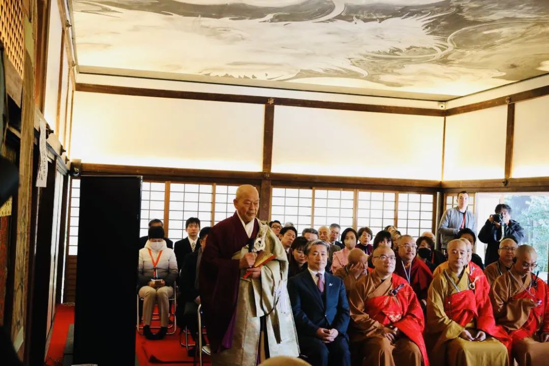 山水庭院设计师中根宏行、襖绘设计师木村英、天井白龙图设计师陈漫等人也分别发表了致辞,分享了各自在佛教艺术和佛教文化交流方面的心得与体会。