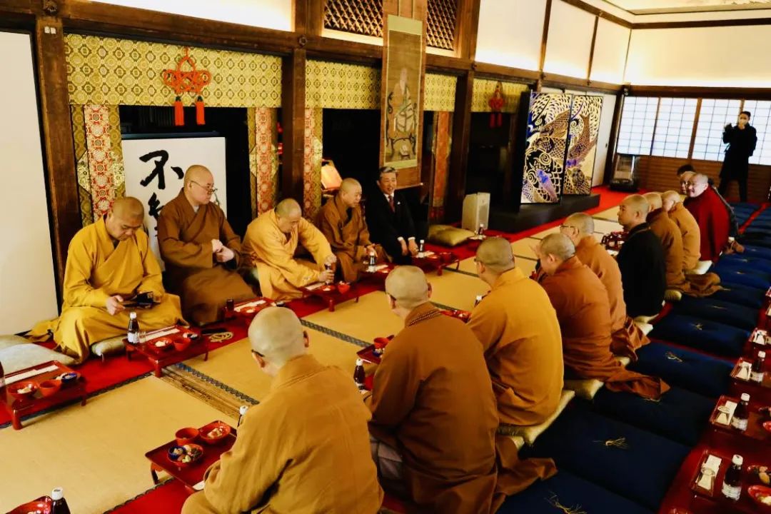 据悉,法会活动前夕,中国佛教代表团纯一团长一行专程前往我国驻大阪总领事馆参访座谈,共进工作晚餐,双方在友好的气氛中,就中日佛教的历史渊源、文化交流现状以及未来合作方向进行了广泛的交流,并就推动中日佛教文化交流进行了深入探讨。