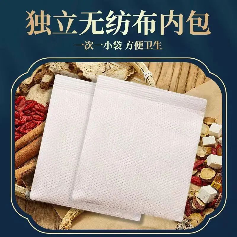 无纺布包装,一袋鼓鼓当当的,药材被紧紧包裹在内,放入水中后,静待5~10分钟,药材的有效成分慢慢析出,散发出清新的药材的味道。