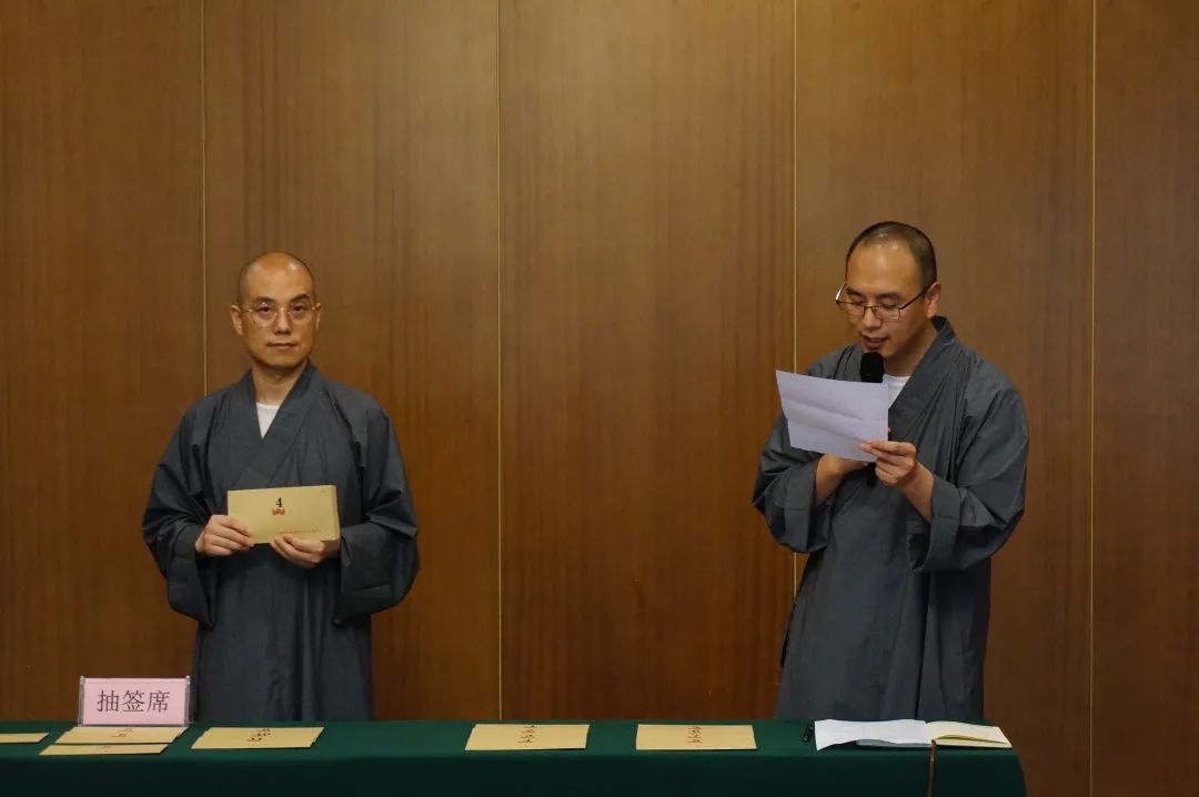 会上,光泉法师首先向参加此次会议的佛学院代表说明抽签规则,众佛学院代表相继抽签,确定了此次论辩会各队伍的辩题以及持方。