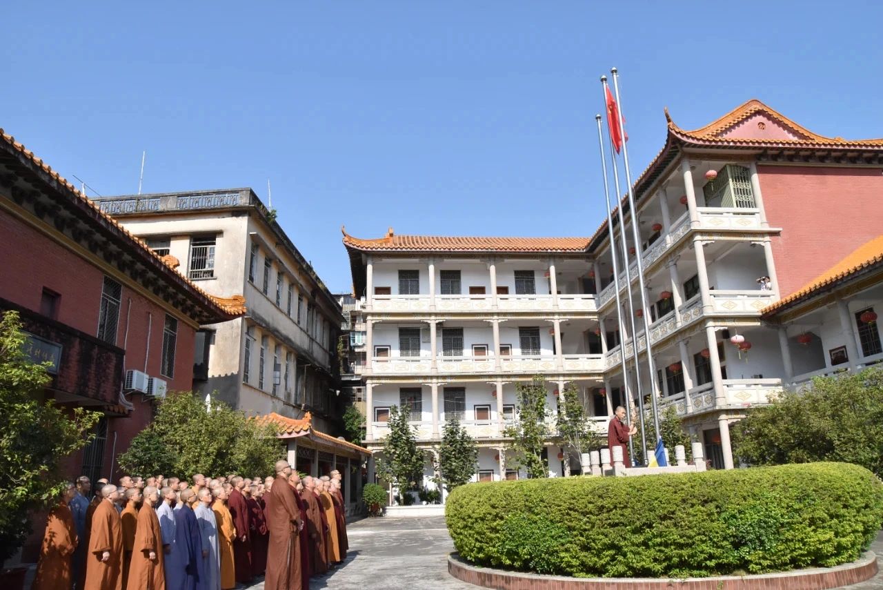 2024年,潮州开元寺常住及岭东学院组织“锦绣传统,活力校园”的八段锦强身运动训练。