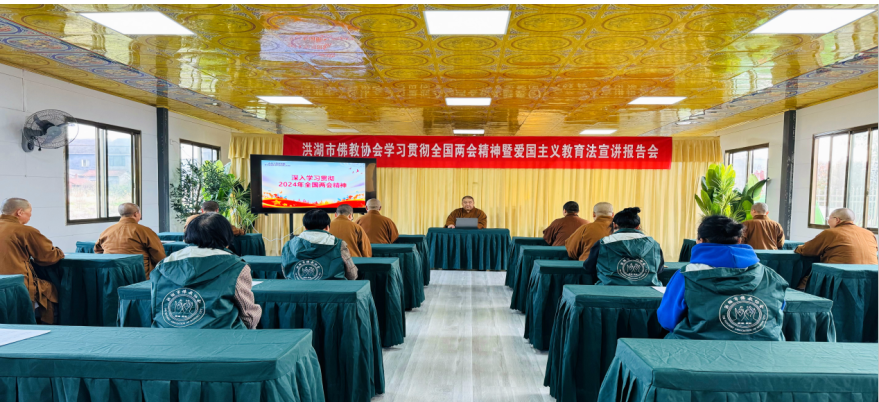 洪湖市佛协举行学习贯彻全国两会精神暨“爱国主义教育法”宣讲报告会,并前往洪湖瞿家湾革命烈士陵园开展清明祭扫活动,弘扬爱国主义精神。