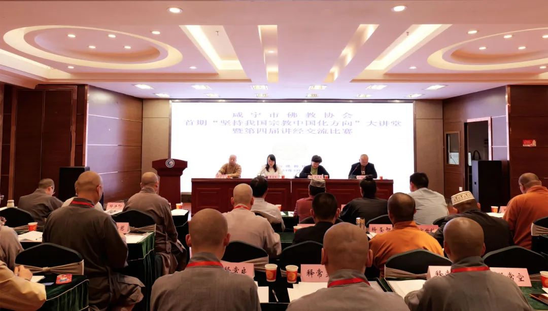 咸宁市佛协举办首期“坚持宗教中国化方向”大讲堂暨第四届讲经交流比赛活动。咸宁市委统战部副部长、民宗委主任张德英,省佛协秘书长、省佛教事务服务中心主任李进文出席开幕式并讲话。